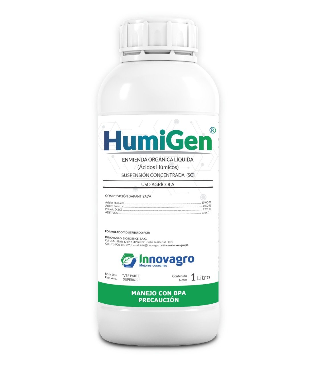 HUMIGEN es una enmienda orgánica liquida a base de ácidos húmicos y fúlvicos reforzado con potasio, principales activadores metabólicos y fisiológicos de las plantas para obtener una máxima respuesta.